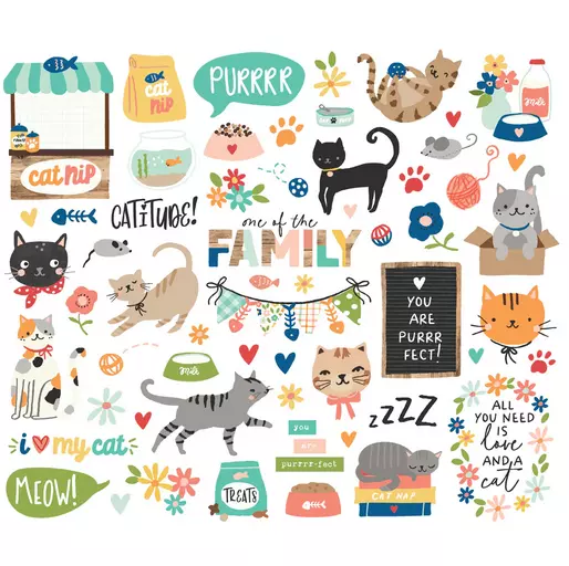 59 piezas troqueladas tipo ephemera pack con dibujos y textos que coordinan con la colección.