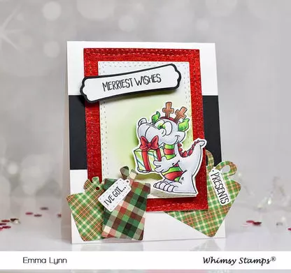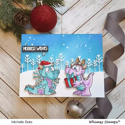 Colección de sellos claramente caprichosos "Dragon Christmas Wishes" ilustrada por Dustin Pike para Whimsy Stamps. Sellos transparentes de fotopolímero de alta calidad, usar con un acrílico