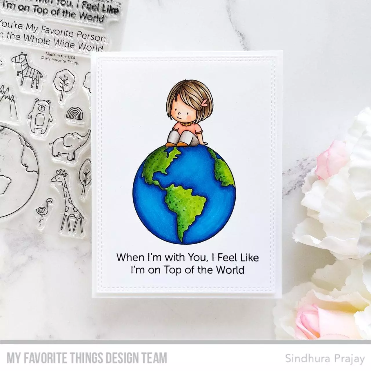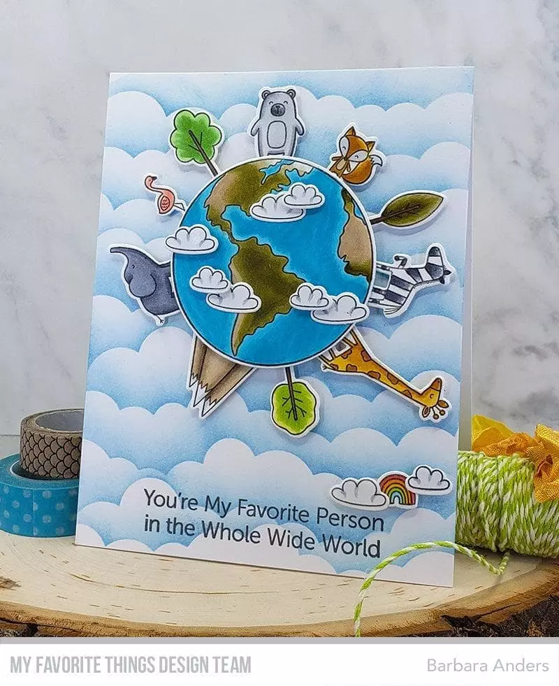 Sentiments: When I'm with You, I Feel Like I'm on Top of the World, You're My Favorite Person on the Whole Wide World, Welcome to the WorldSentimientos: cuando estoy contigo, siento que estoy en la cima del mundo, eres mi persona favorita en todo el mundo, bienvenido al mundo Globo 2 1/4'', Zorro 5/8'' x 5/8'' Cebra 3/4'' x 3/4'' Oso 5/8'' x 7/8'' Elefante 1'' x 7/8'' Flamenco 3/8'' x 3/4'' Jirafa 1'' x 1 1/2'' Montañas 3/4'' x 3/4'' Nubes (2) 5/8'' x 1/4'', 3/8'' x 1/4'' Arco Iris 3/8'' x 1/4'' Árboles (3) 1/2'' x 3/4'', 5/8'' x 1'', 3/8'' x 7/8''