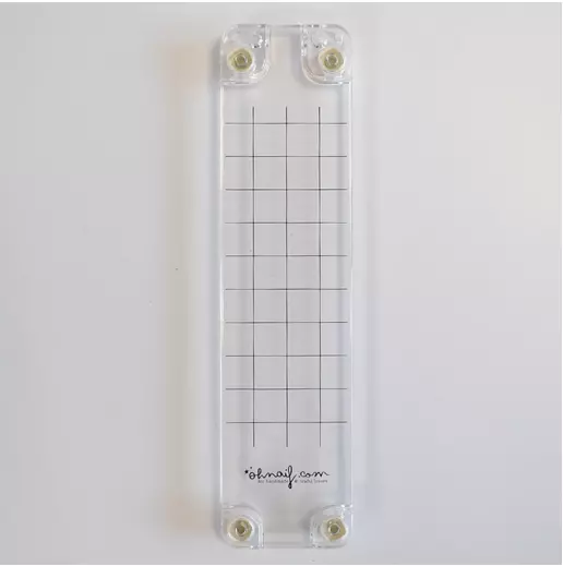 CARACTERÍSTICAS:- tiene pivotes en las 4 esquinas con los que gracias a ellos podrás crear estampados de repetición consiguiendo distancias equidistantes- mide 20 x 5 cm- tiene cuadrícula que ayuda a colocar bien los sellos