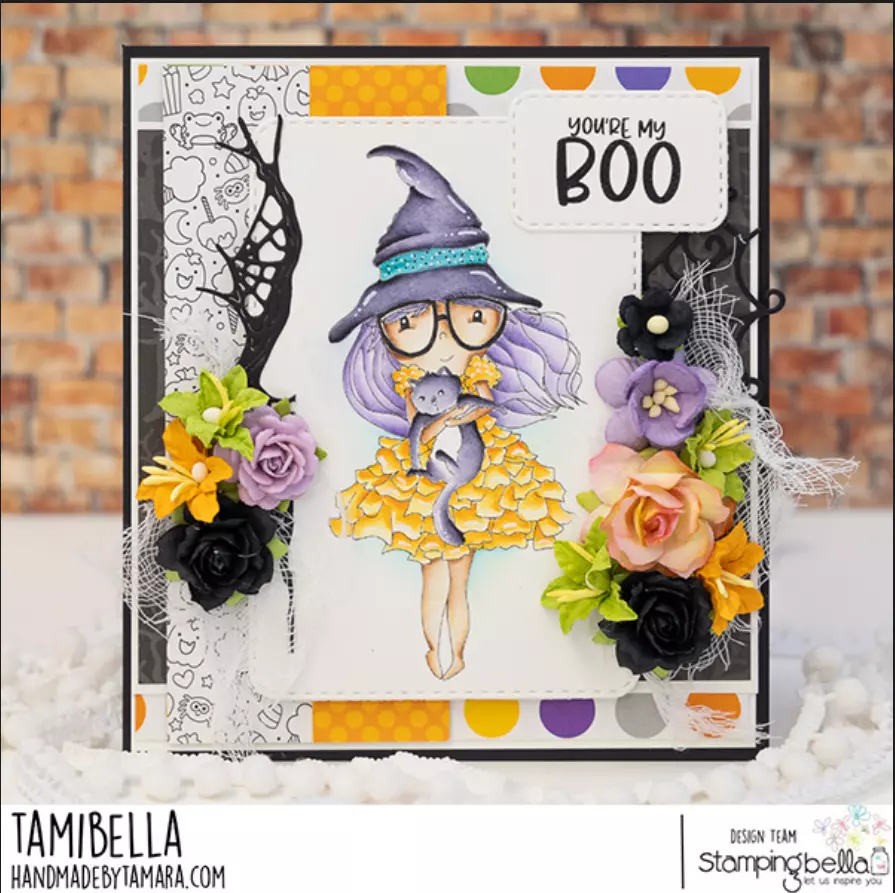 Sello de goma ¡La pequeña bruja con gafas más linda con su amiga felina un poco reacia!